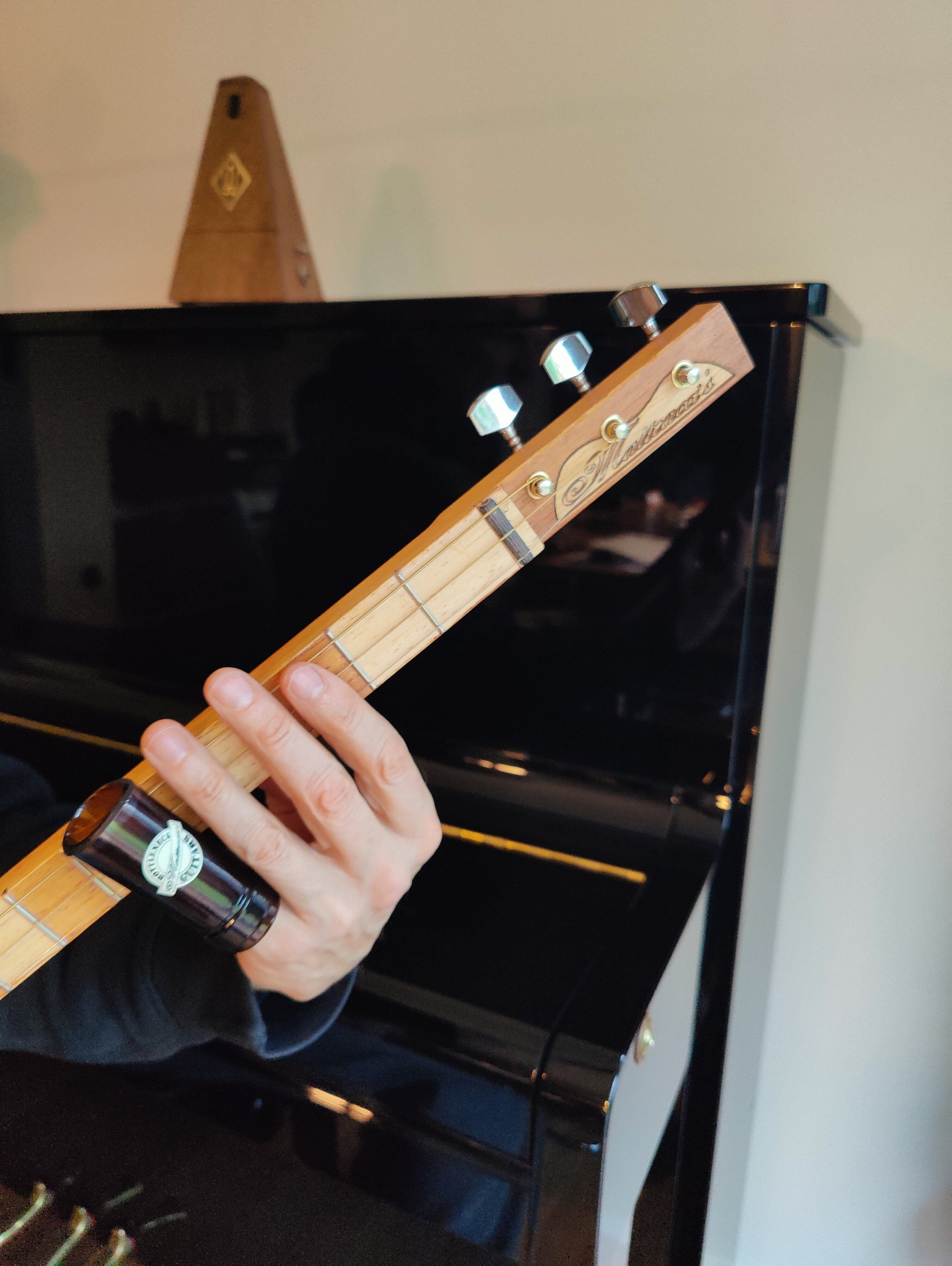 Real Bottleneck brown glass bottleneck for a very bluesy sound.