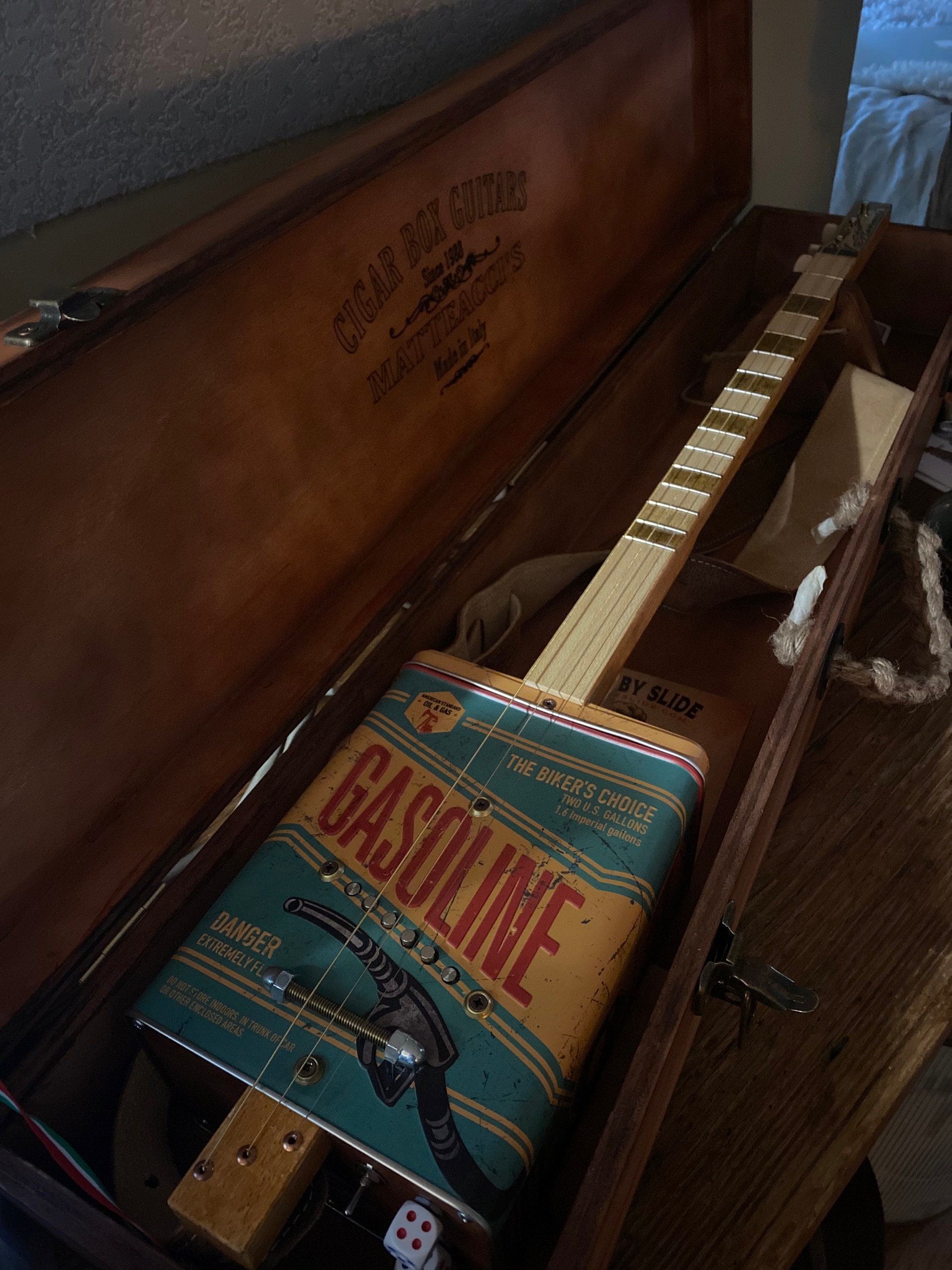 The Cigar box Guitar in the photos is not included in the price.